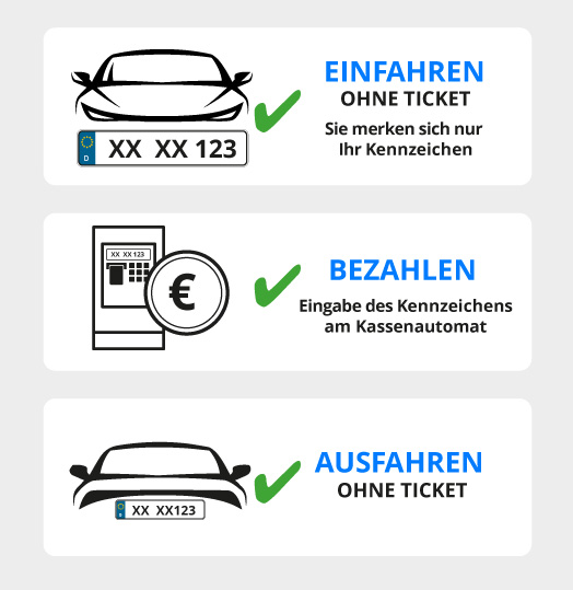 1 Ein- und Ausfahrt nur während der Öffnungszeiten des Parkhauses.